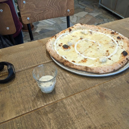 One of the standout items on the menu is the Panuozzo Funghi Pain Pizza, a unique twist on traditional pizza with a blend of flavors that includes mushrooms, gluten, and soy. Priced at 8.90, this dish is both bon et pas cher, offering great value for money.